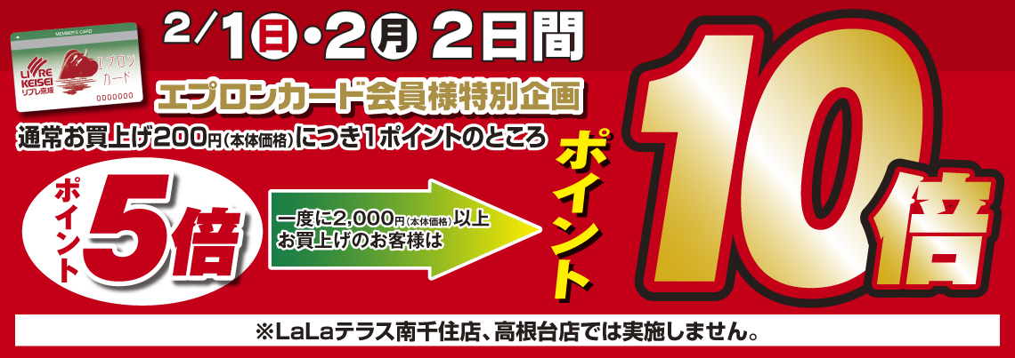 エプロンカードポイントアップキャンペーン開催(2月1日~2月2日)