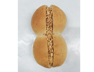 落花生の形に見立てたふんわりとしたパンにピーナッツクリームをたっぷり挟んだ菓子パンです。