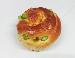 枝豆とチーズクリームを包んでふんわりと焼き上げた夏向けの調理パンです。