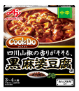 「Cook Do®」(中華合わせ調味料)あらびき肉入り黒麻婆豆腐用中辛爽やかな香りうま味がクセになる、四川山椒と3種の醤の黒麻婆豆腐。 |